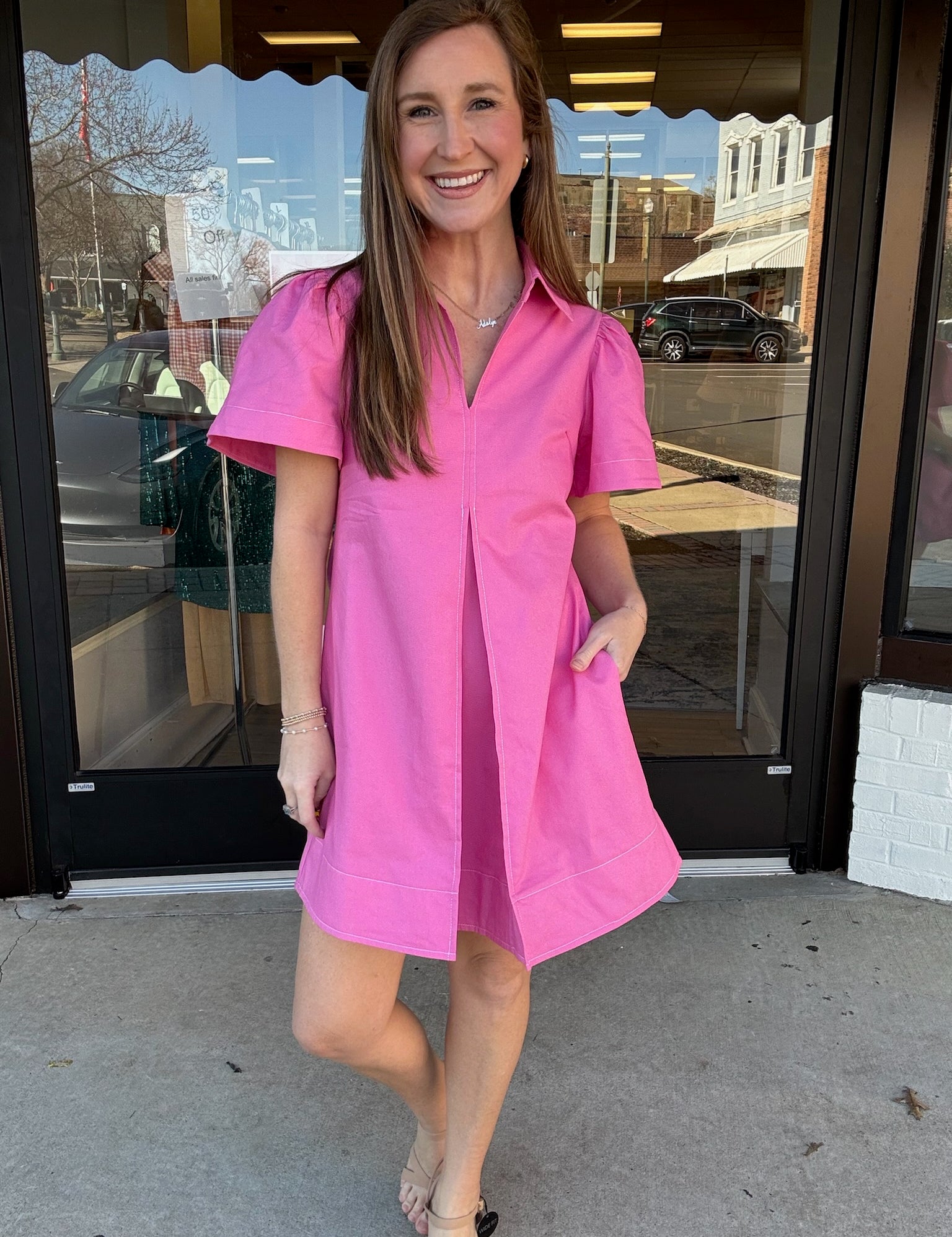 Uptown Pink Shirt Dress