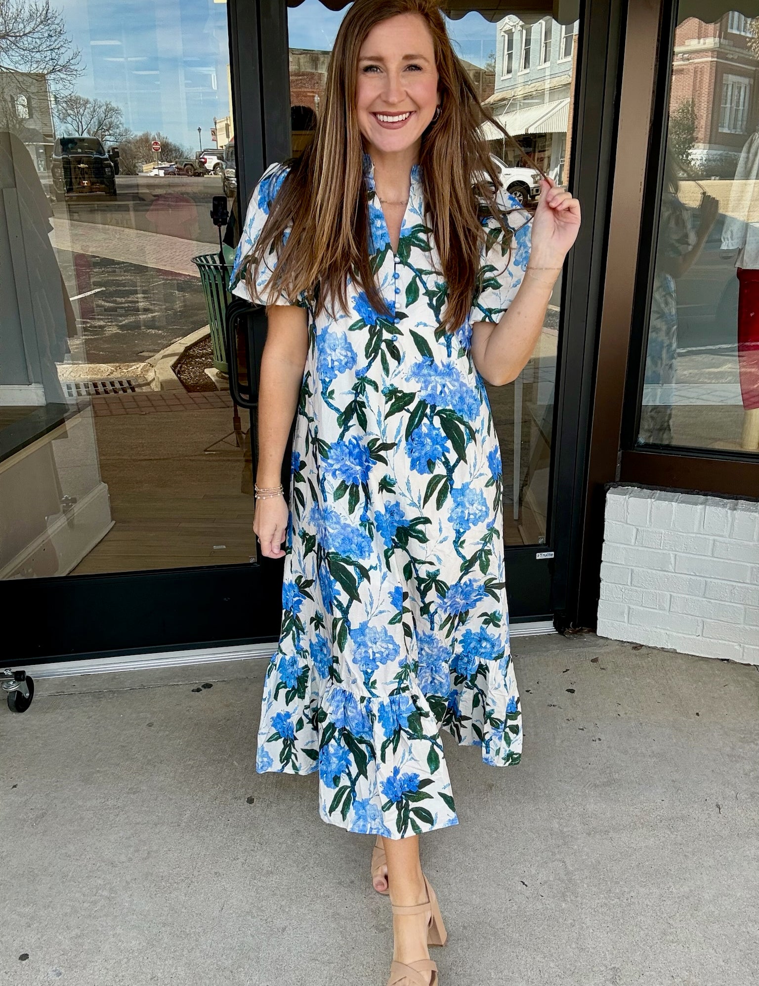 Blue Blooms Midi Dress
