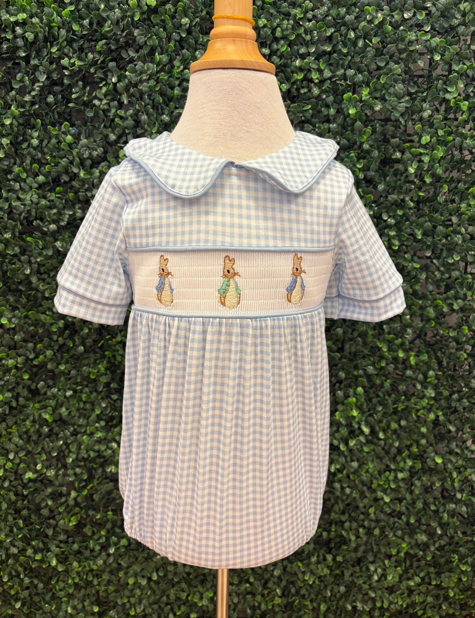 Bunny Smocked gingham boys romper