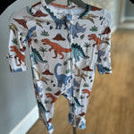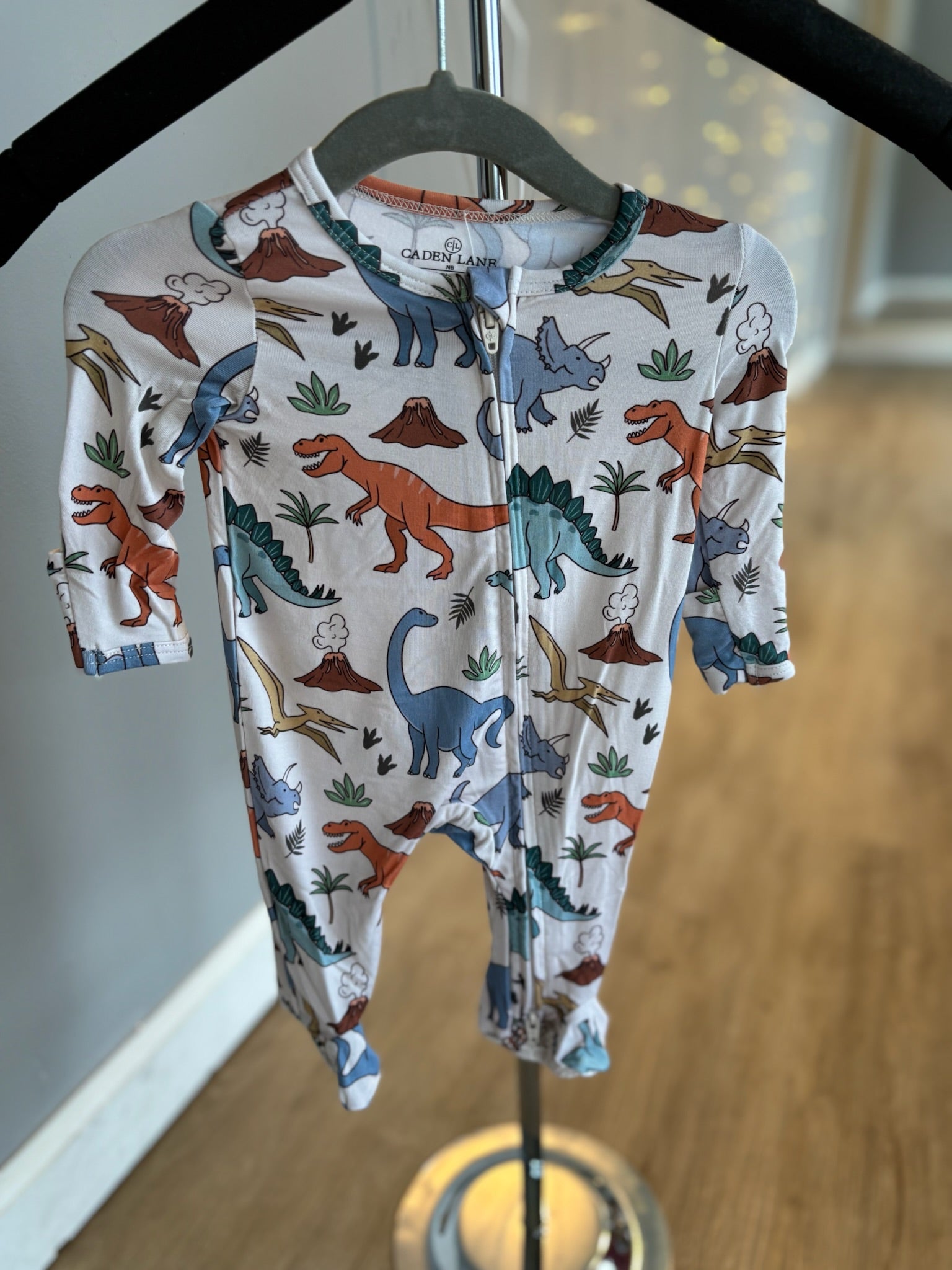 Send your little one off to sweet dino dreams in this adorable baby zipper footie! Made from ultra-soft bamboo viscose, this footie pajama features a vibrant blue and orange dinosaur print that was made for all of the little dinosaur lovers. With its gentle, breathable fabric, this footie keeps babies cozy and comfortable all night long, so they can rest peacefully and wake up happy. The convenient double zipper design makes bedtime changes a breeze, while the snug fit keeps them warm without overheating. Perfect for cuddles, snuggles and mid-day naps, these pajamas are a cute and cozy bedtime essential.