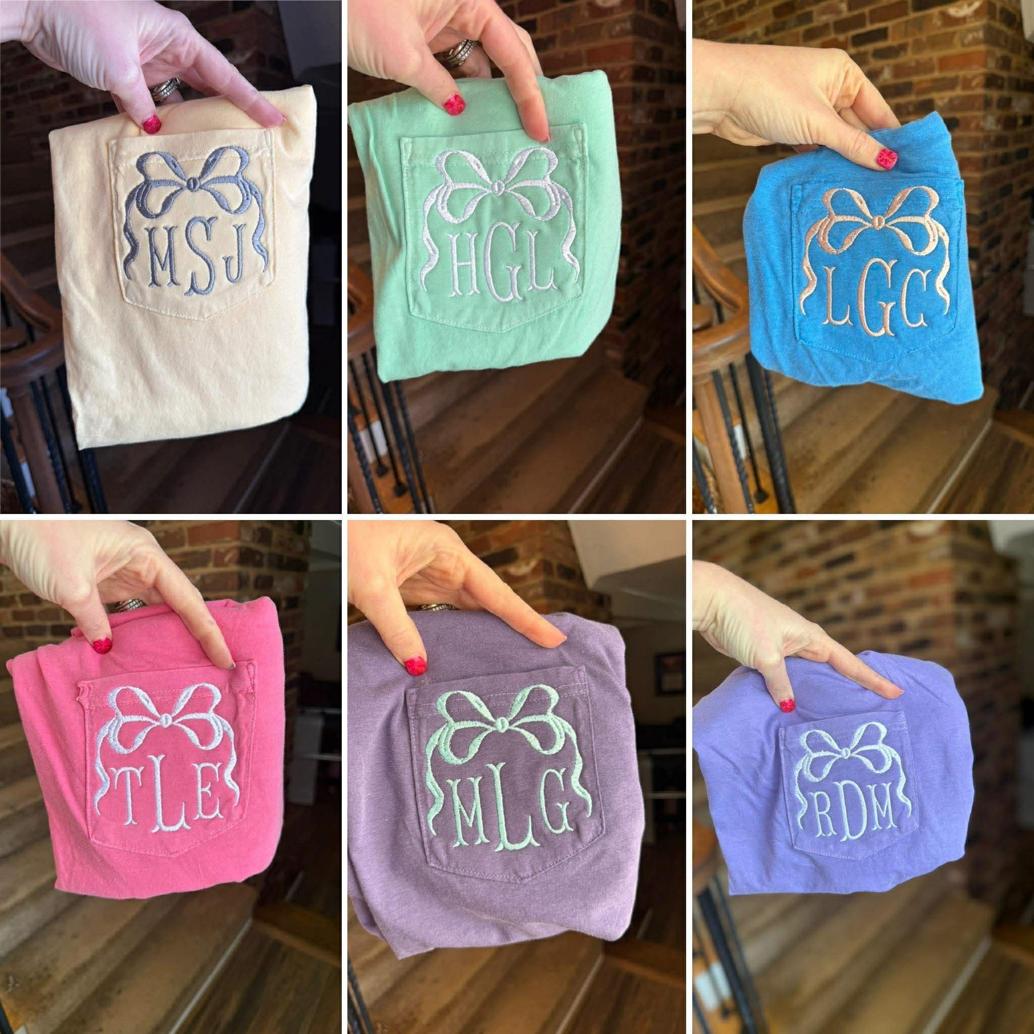 Pre-Order Comfort Color Pocket Monogram Bow Tees