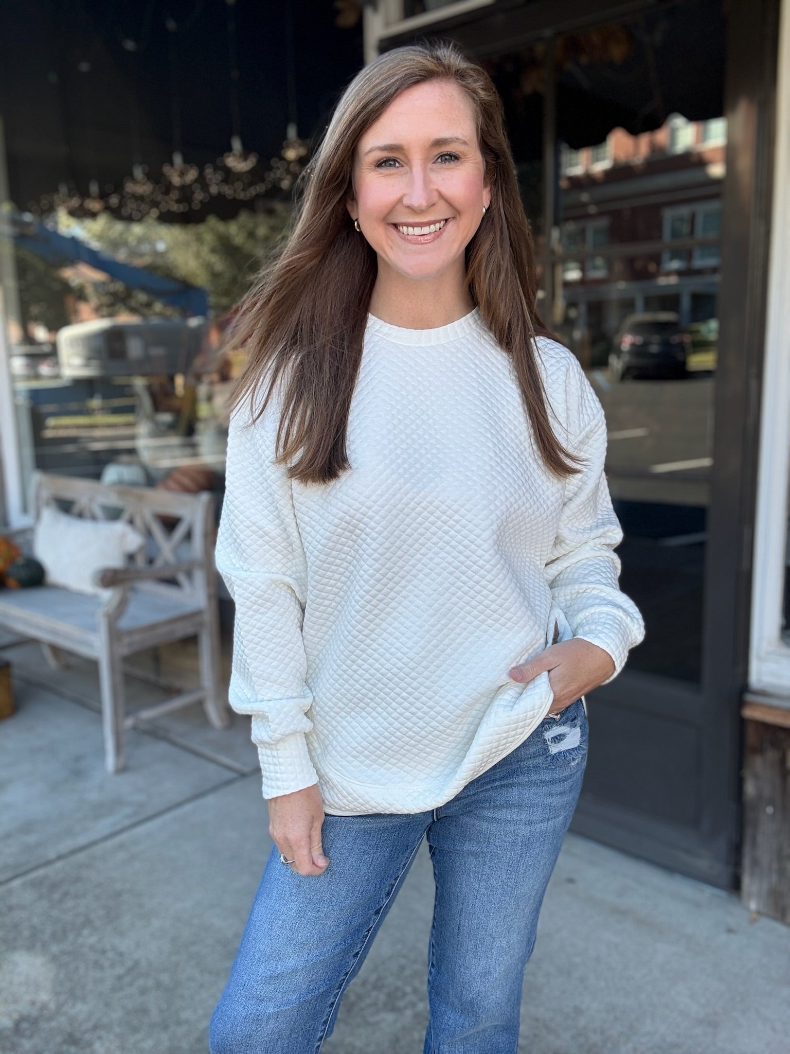Meet your new favorite neutral! Our Cozy Quilted Pullover is the perfect blend of comfort and style — featuring a soft quilted texture, relaxed fit, and lightweight feel that’s ideal for layering. Whether you’re running errands, heading to the pumpkin patch, or lounging at home, this top keeps you effortlessly cute and cozy all season long.