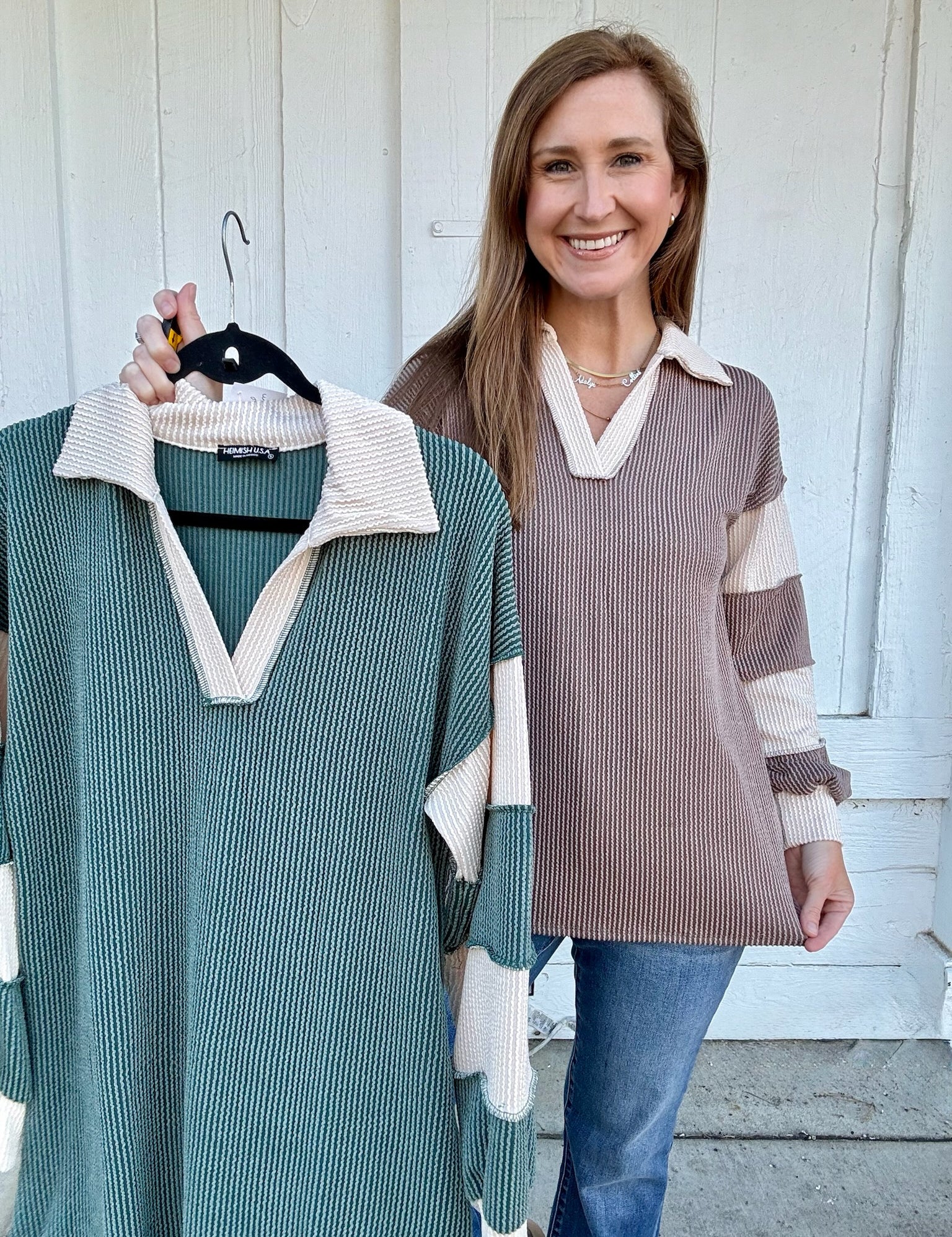 Olive Scalloped Trim Balloon Sleeve Blouse