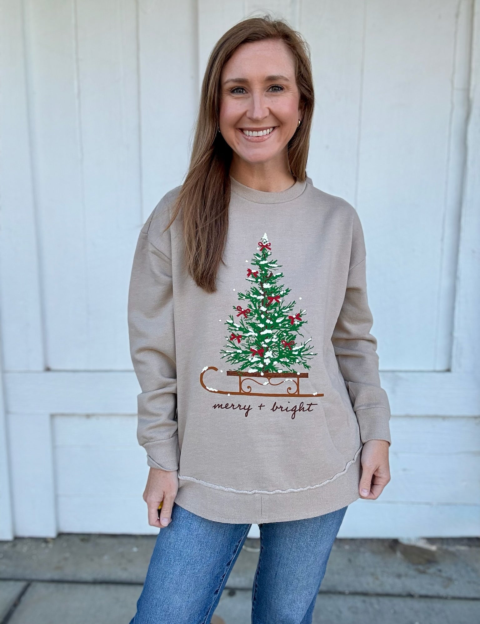Merry + Bright Christmas Tree Sweatshirt – Cozy Holiday Pullover
