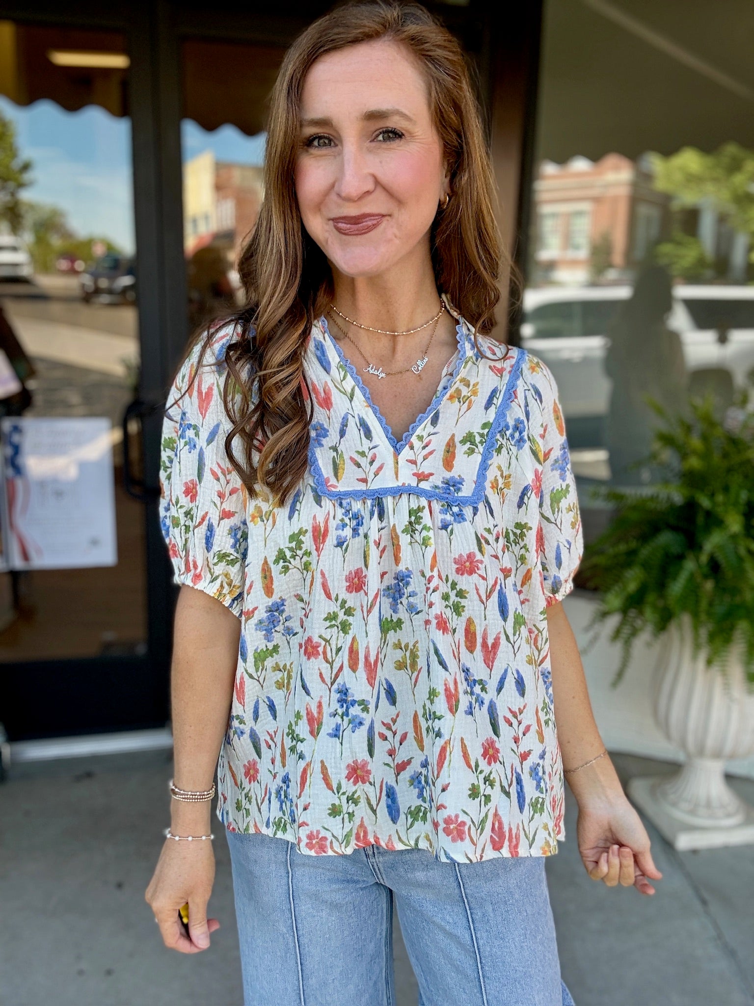 The delicate blue trim detail adds the perfect touch of charm while the flowy, relaxed fit keeps it comfy and easy for everyday wear. It’s one of those throw-on-and-go pieces that still looks like you tried 💕