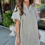 The button-front detail and soft collar add that polished touch, while the relaxed fit and breezy fabric keep it comfy and easy for everyday wear 🤍 It’s one of those throw-on dresses that instantly looks put together—no effort needed!