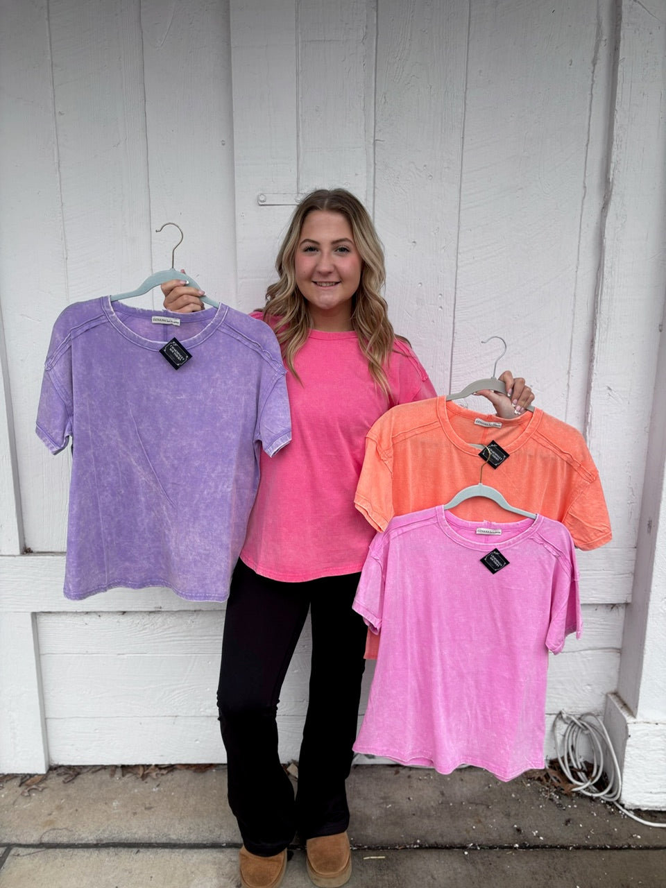 Our best-selling acid wash tees are true to size and come in the perfect spring-ready colors. Soft, versatile, and effortless for everyday wear.