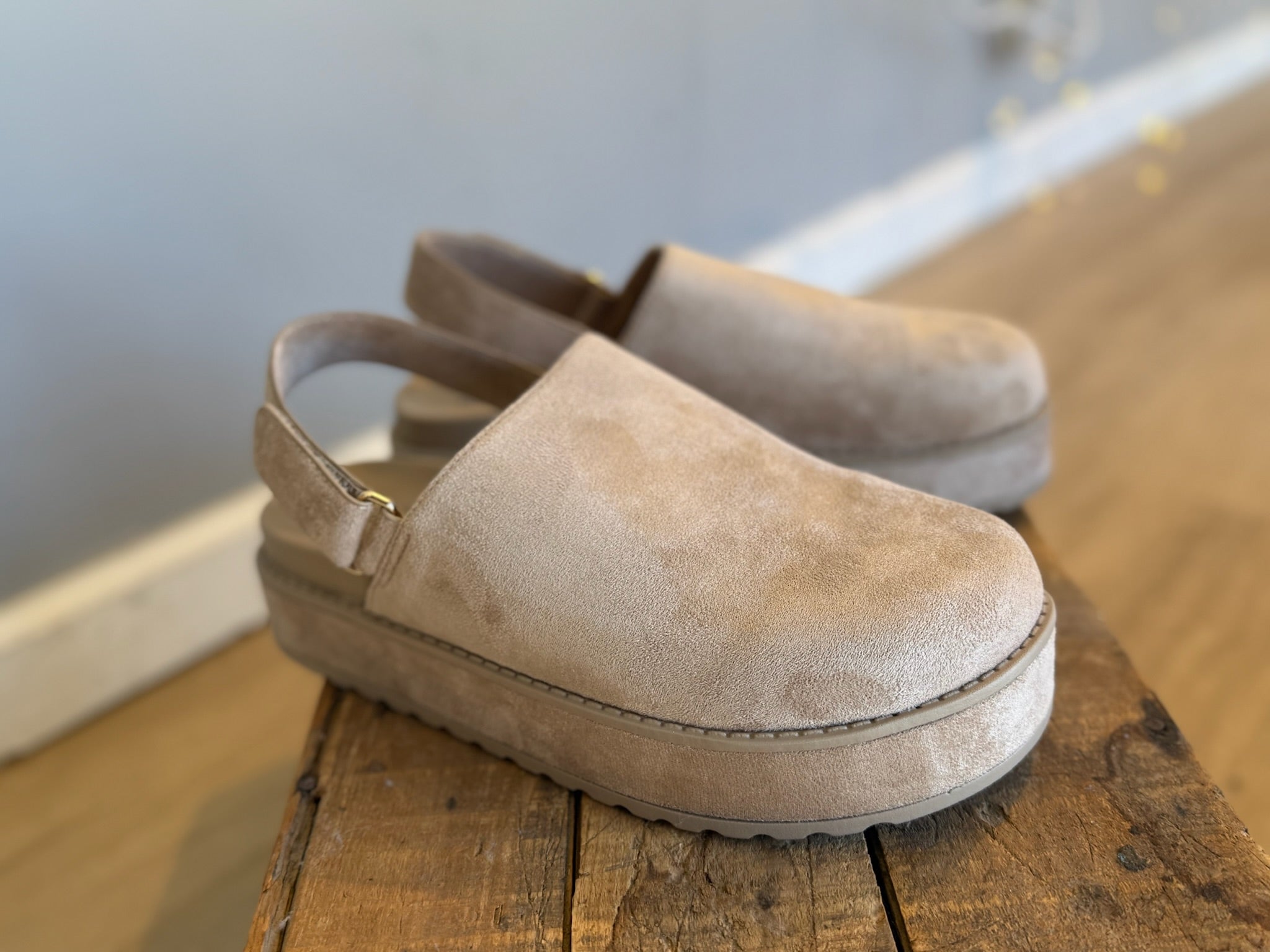 Meet your new everyday obsession. Our Platform Clogs bring effortless boho vibes with a cozy twist. Designed in a soft taupe suede-like finish, these clogs feature a cushioned platform sole for all-day comfort and a secure adjustable slingback strap with gold hardware for a touch of polish. Easy to slip on and style, they’re perfect for busy mama days, boutique runs, coffee dates, or dressing up your favorite denim and flowy dresses.