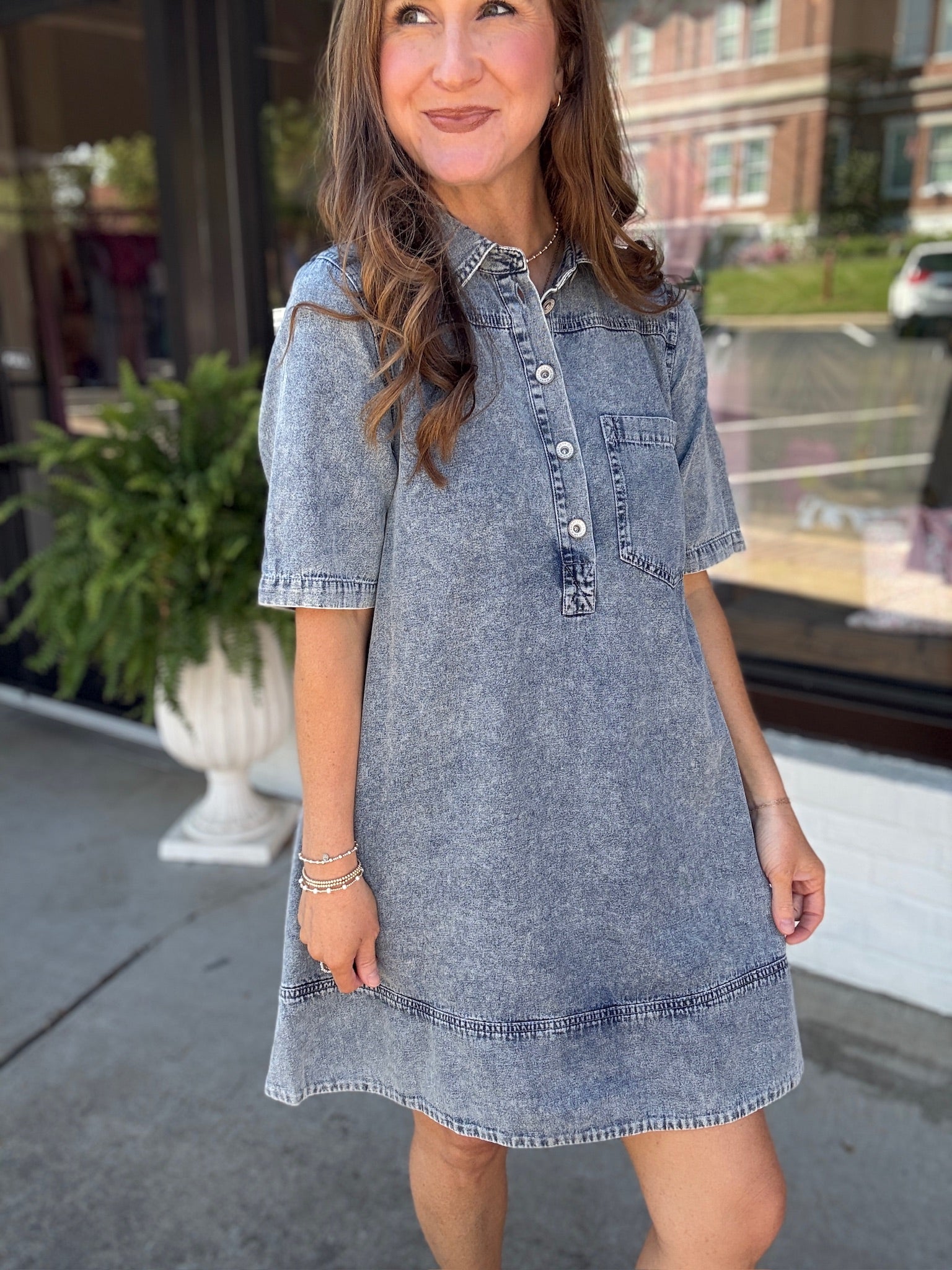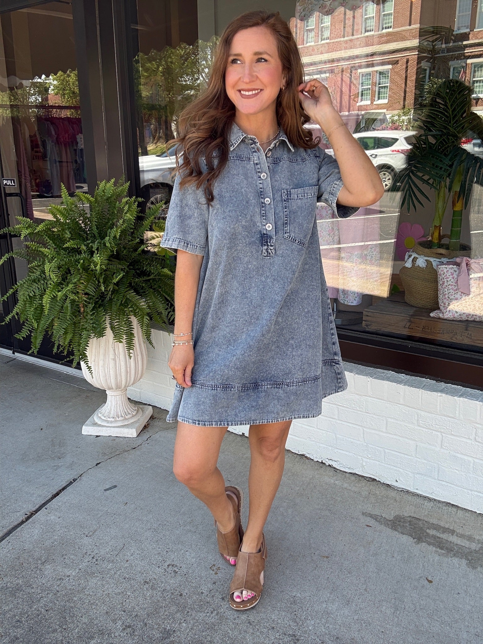 Featuring a soft washed denim look with a relaxed fit, button-front detail, and classic collarāthis one gives casual, cool, and timeless all in one ⨠Itās comfy enough for everyday wear but cute enough to dress up when you need it!